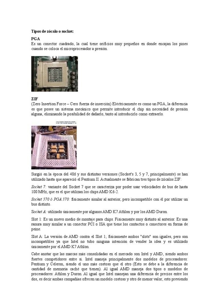 Diferentes Tipos De Socket Y Slot Para Conectar El Procesador A La Pl